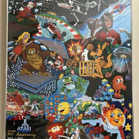 Vintage Video Game Art Original Painting Atari 20th Anniversary J. Calcano 35x30