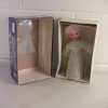 Condition:  Both tree topper and original box in fair used vintage condition with wear and issues.  Tree topper is missing the original 10-light string; factory holes in doll for lighting; some yellowing and age-flecked staining; one arm loose and taped on; doll hair frazzled.  Original box is tattered and torn, including cellophane window, but still intact.  This item is being sold in AS IS condition, missing original light string, and is priced accordingly.