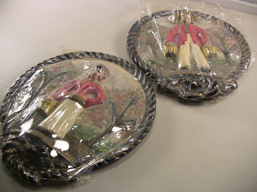 Vintage Chalkware Plaques Mid-Century Wall Decor Colorful Spanish Bas Relief