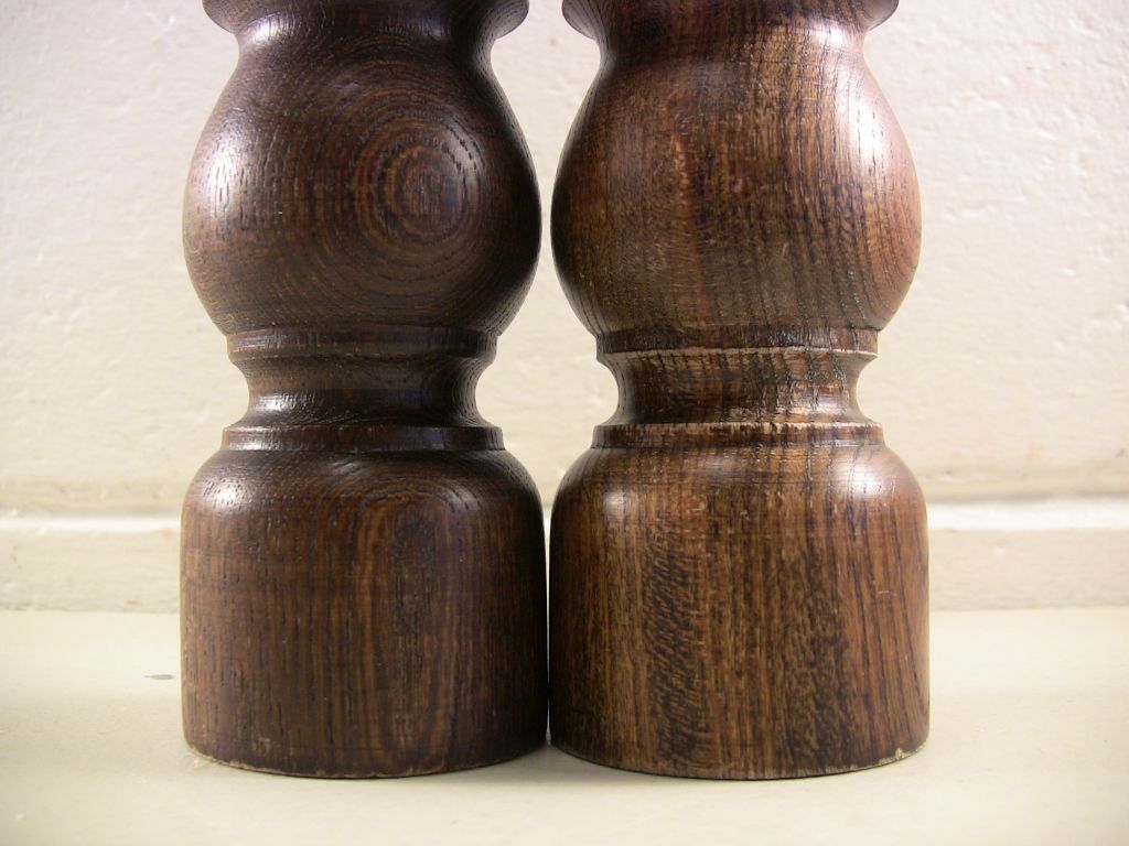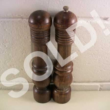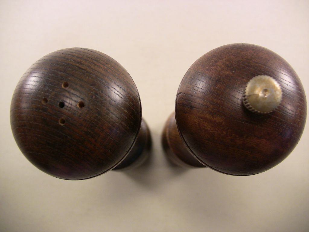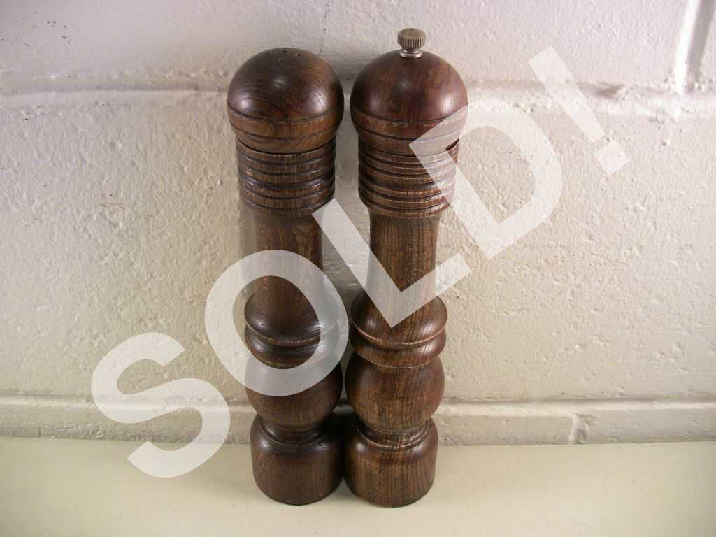 Vintage large turned wood salt and pepper set; salt shaker and pepper mill grinder