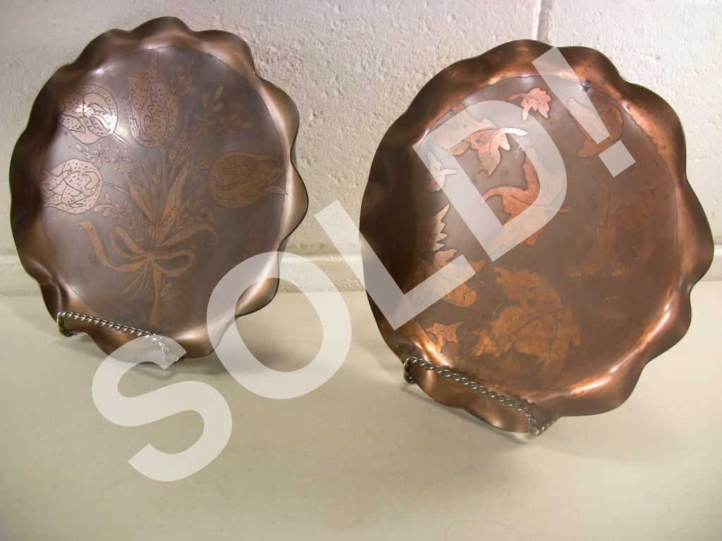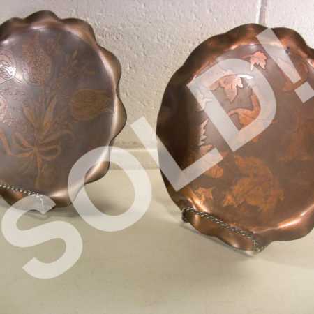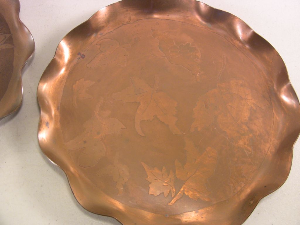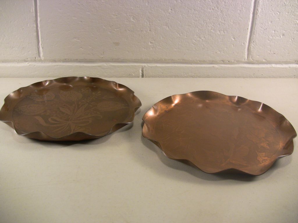 Vintage Copper Trays Etched Copper Plates Decorative Plates Mid Century Metalware