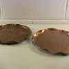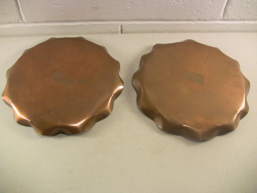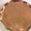 Solid copper decorative plates are round and flat, with ruffled pie-crust lips