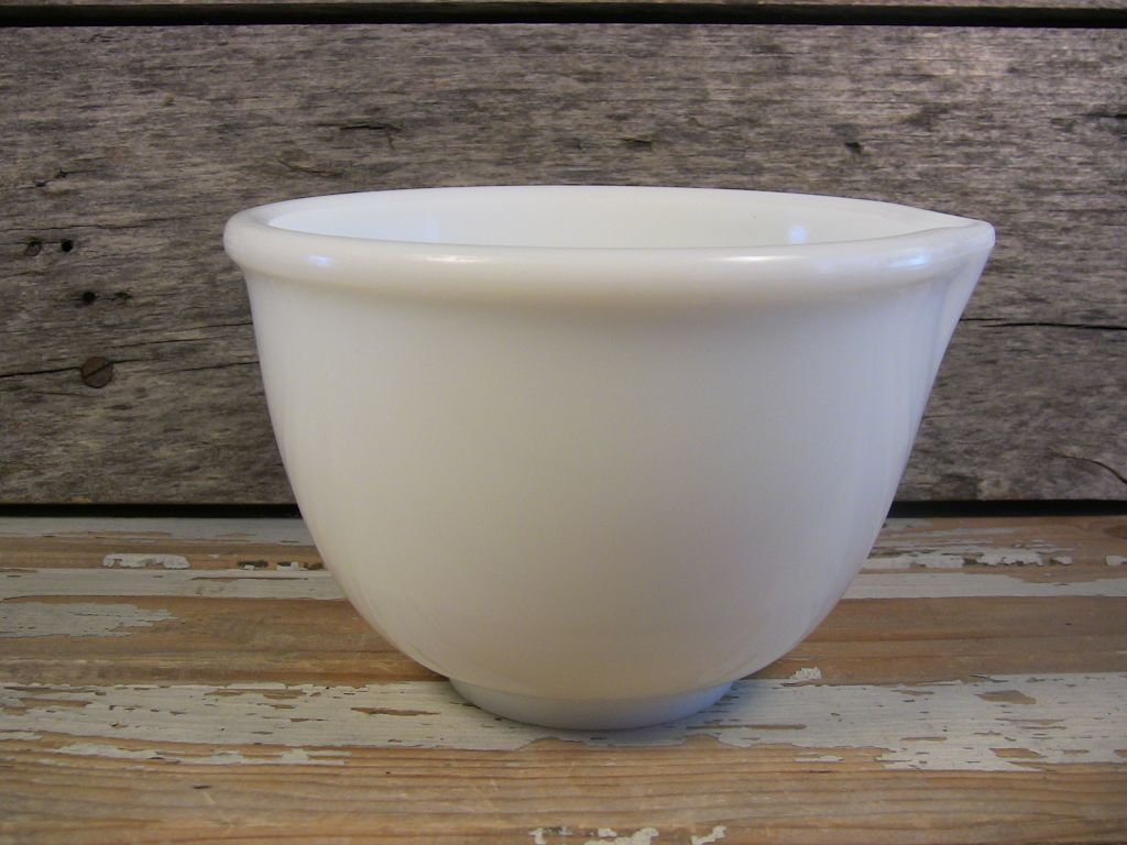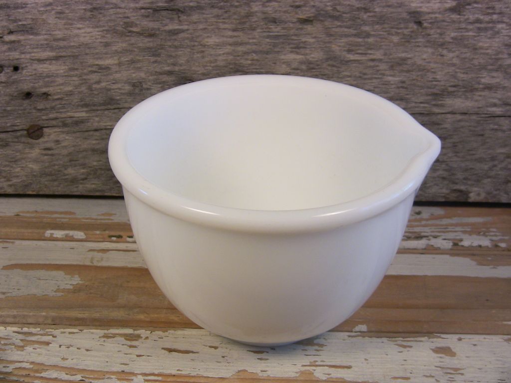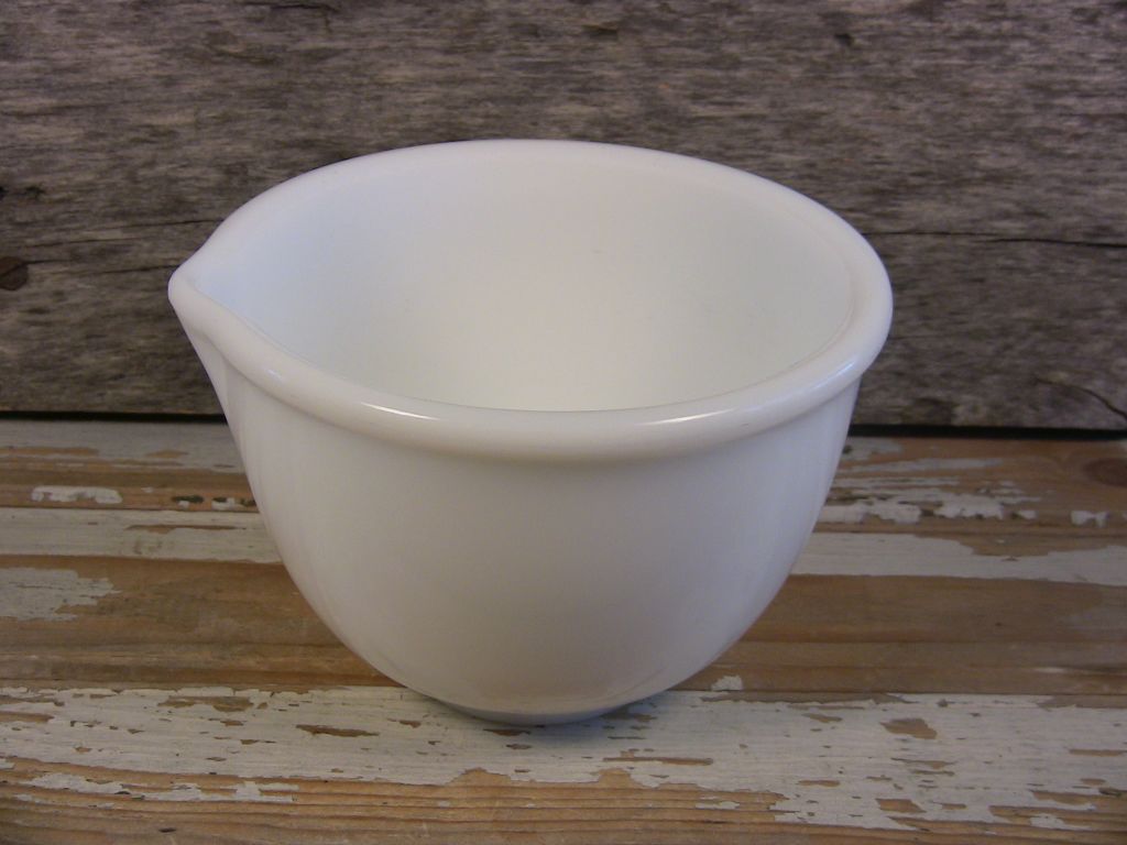 Small Vintage Mixing Bowl Pour Spout for Stand Mixer Thick Rim Milk Glass 6.5-In
