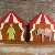 Colorful hand-painted red and white big top tent; and ceramic figurines, detailed in gold gilt