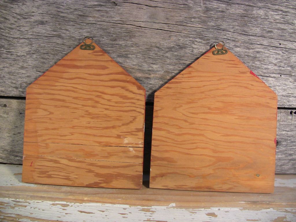 Hand-crafted wall plaques made of quality vintage plywood and crude hand-crafted ceramic figures