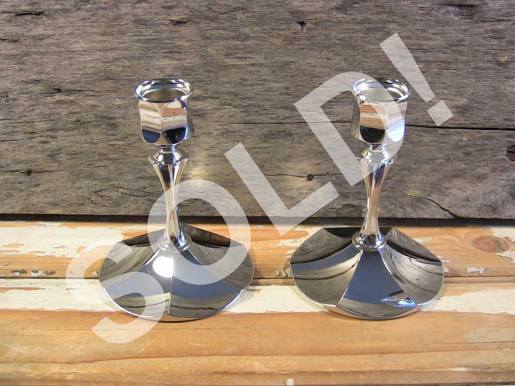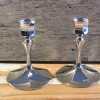 Vintage Pair Chrome Art Deco Candlesticks Taper Candle Holders 1950s Table Decor