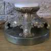 Lamp measures 34.5" high to top of finial, (26" high to top of socket) x 12" widest at glass globe, and 8" diameter platform base