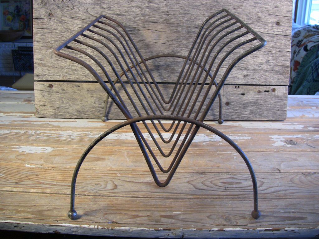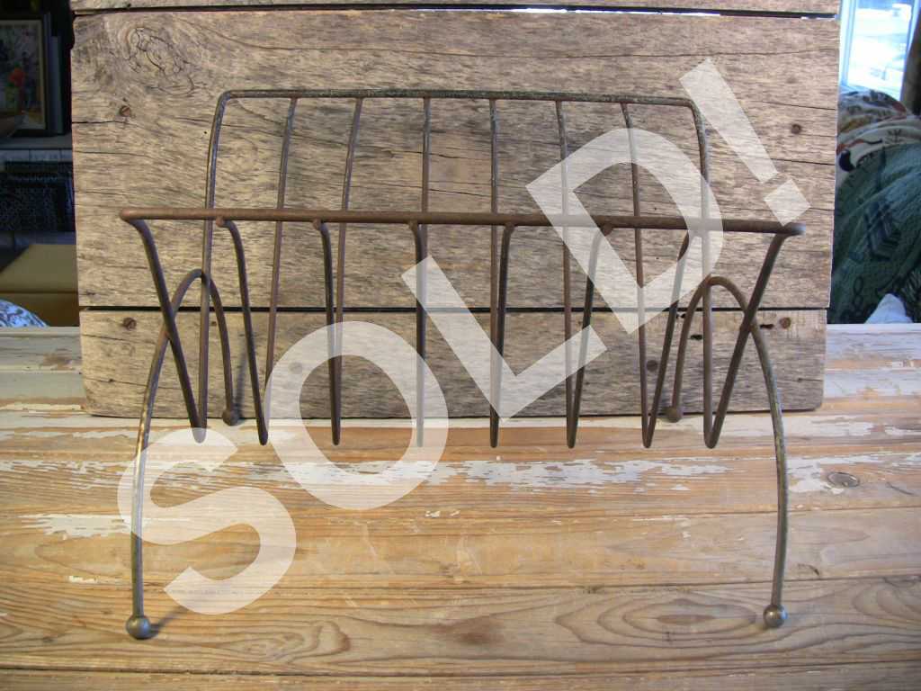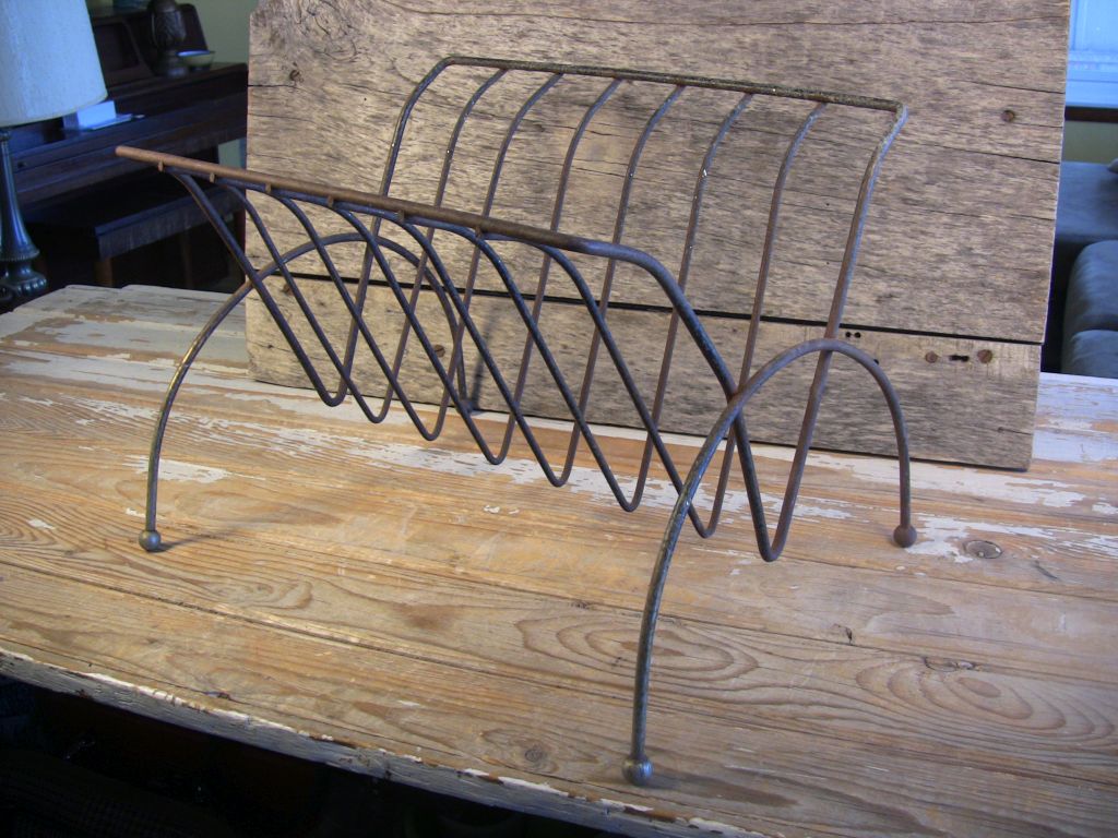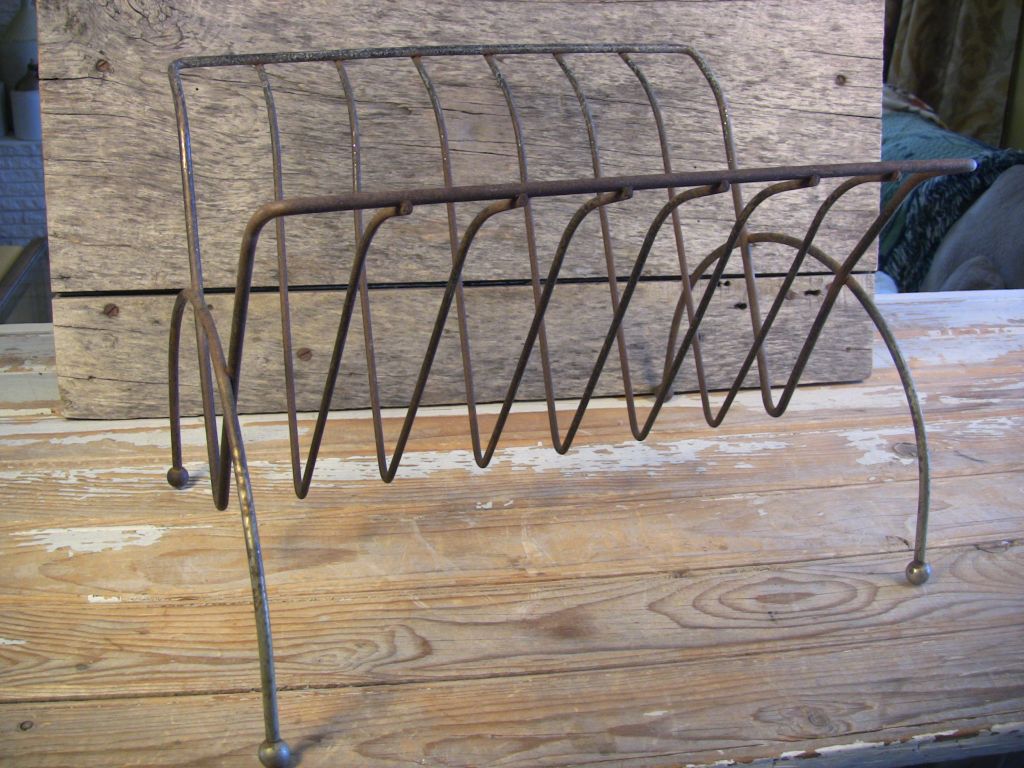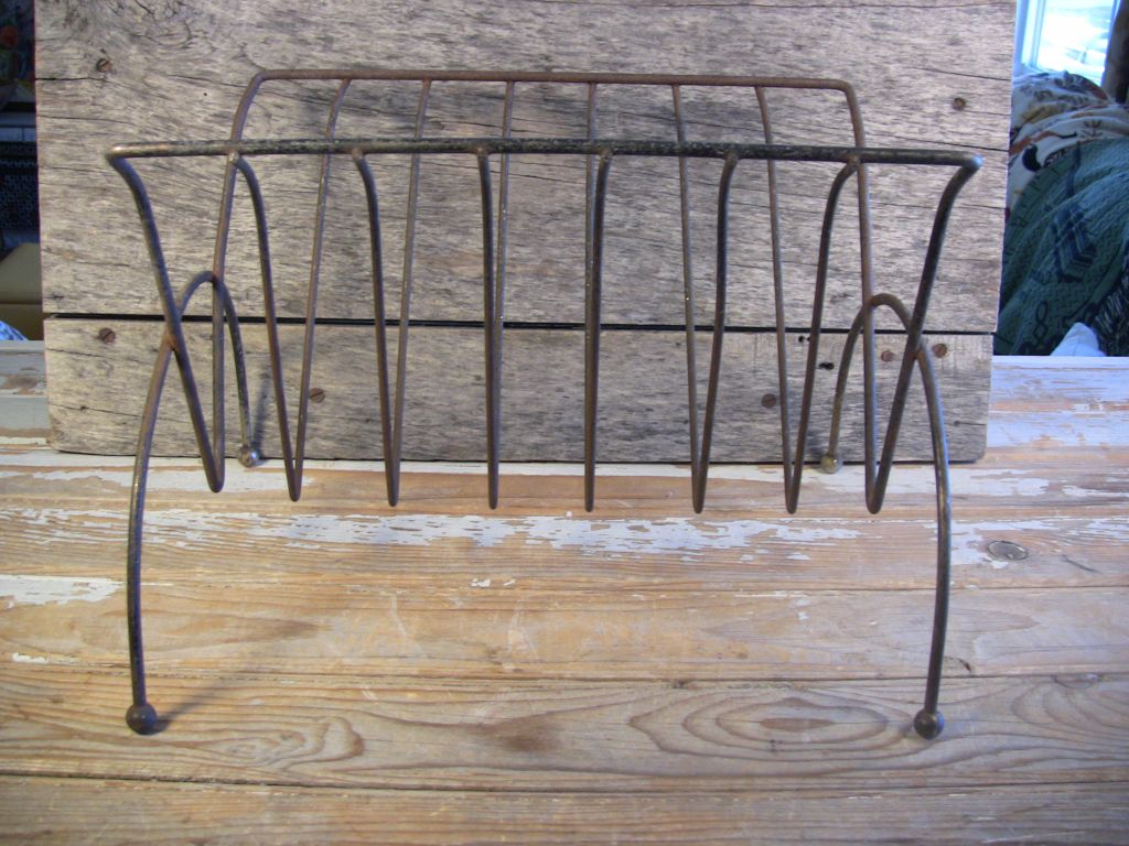 This sturdy vintage wire magazine rack also works well for holding record albums and file folders, and its rusty appearance is right at home in rustic industrial decors.