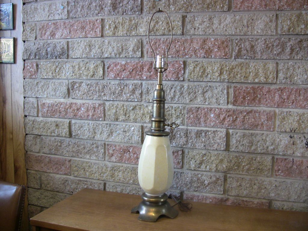 Restoration would entail a new ceramic belly, a new finial, and adding a lamp shade; all other parts intact