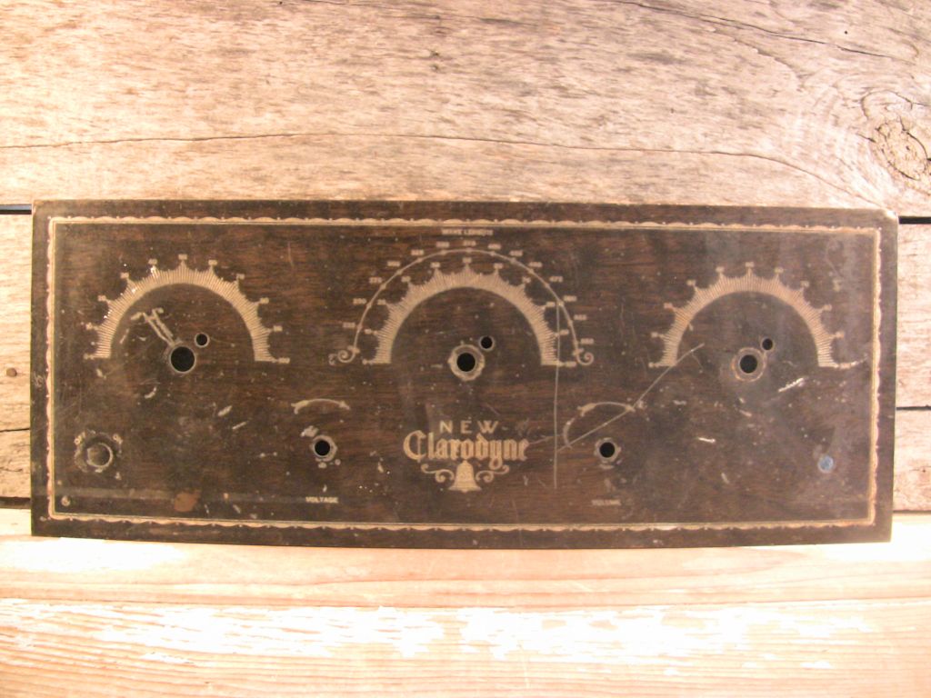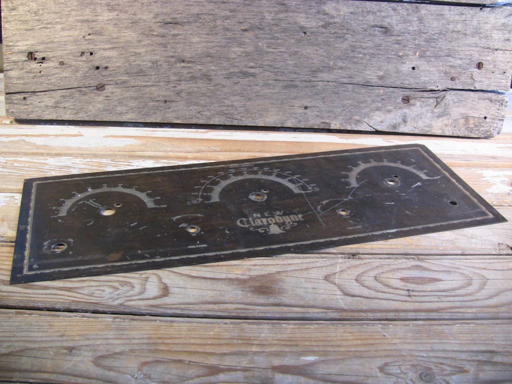 Antique breadboard radio face plate for New Clarodyne Bell Clear; use for radio restoration, or repurpose as decorative metal period sign.