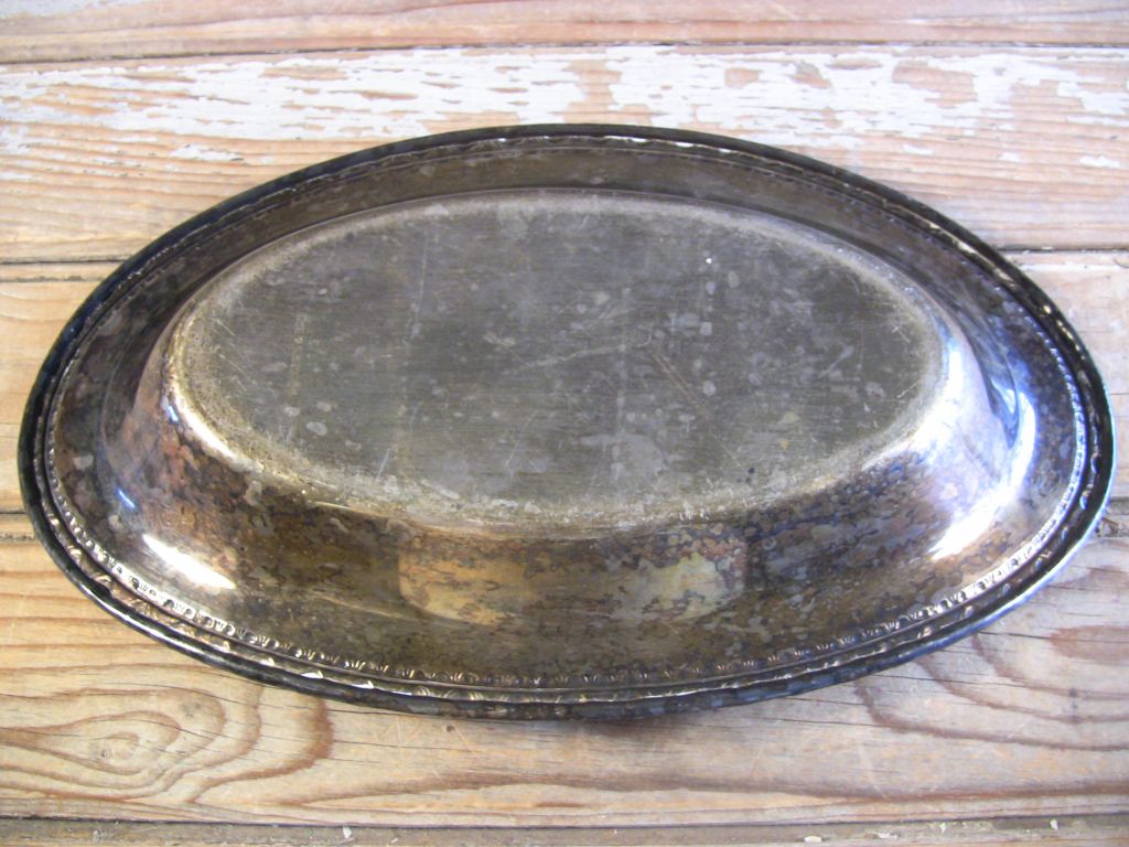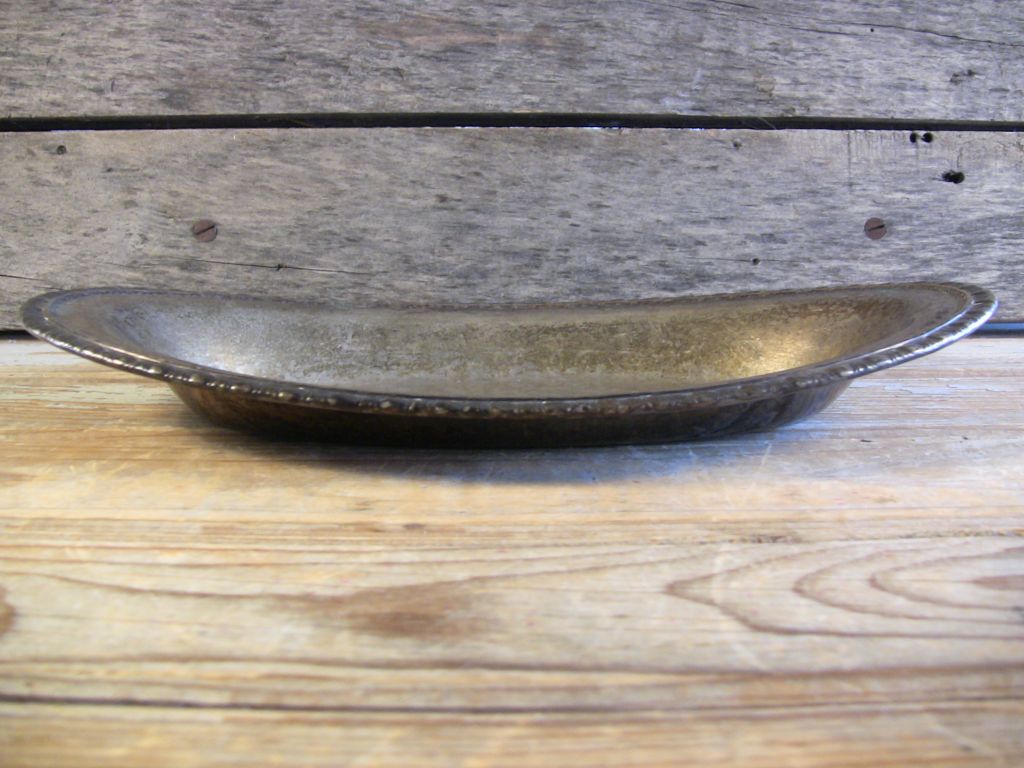 Antique silverplated bread or celery tray in good condition with wear and patina from age and use. Scuffs, scratches, wear, and aged patina throughout. No damage. Unpolished. Antique silverplate bread basket adds to an elegant dining experience in traditional, shabby cottage and rustic farmhouse settings, both indoor dining and out.