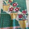 - Screenprint features red and green flowers in yellow pots against green and white background