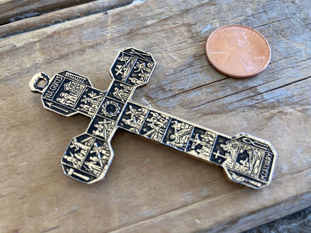 • Vintage Crucifix Pendant Charm Stations Of The Cross Goldtone Italy 1940s 1950s 2.5hx1.5w-in