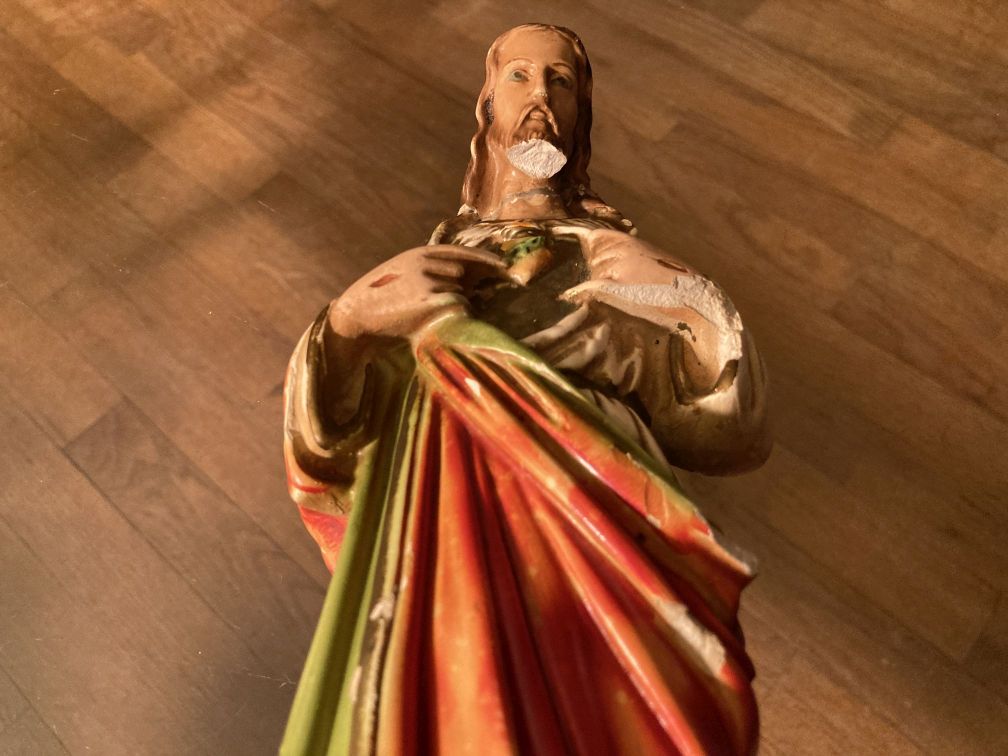 This vintage statue of the Sacred Heart of Jesus imparts to Catholics a religious nostalgia from 1940s and 50s households.