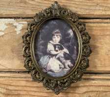 - Vintage Miniature Art Print Decorative Metal Frame Italy 1960s 2of8 Girl and Dog Portrait
