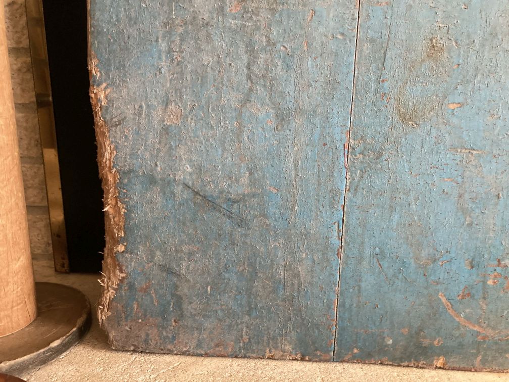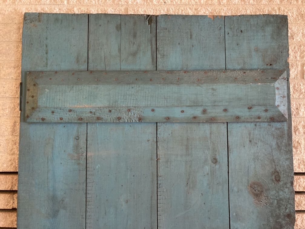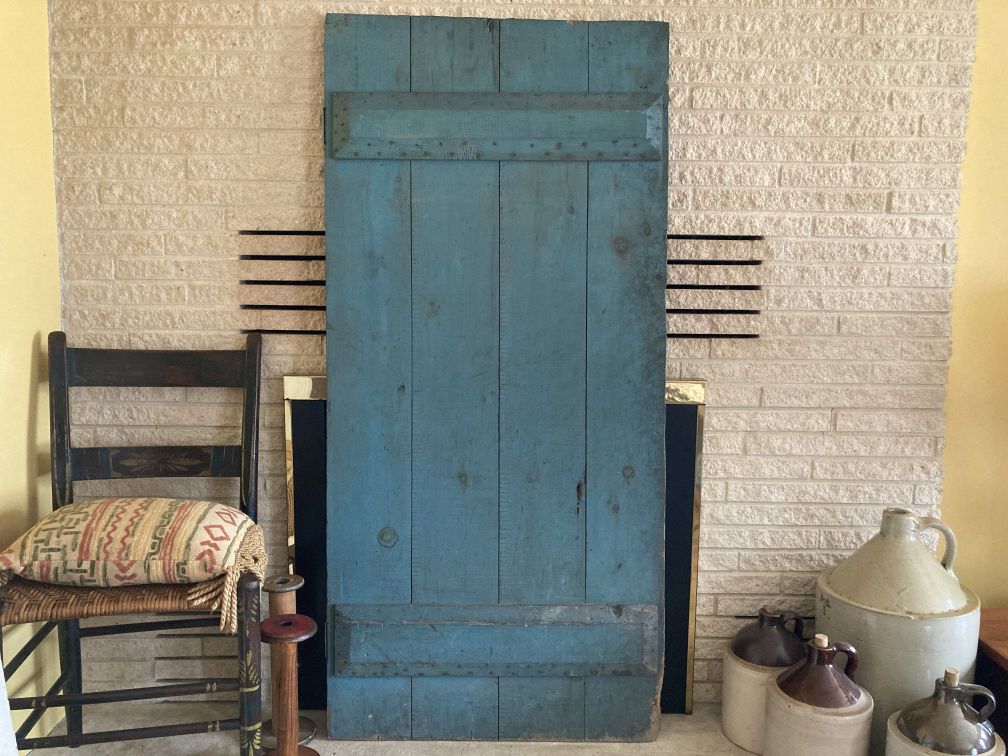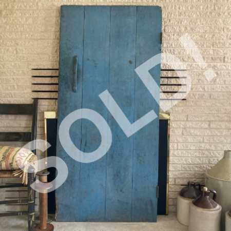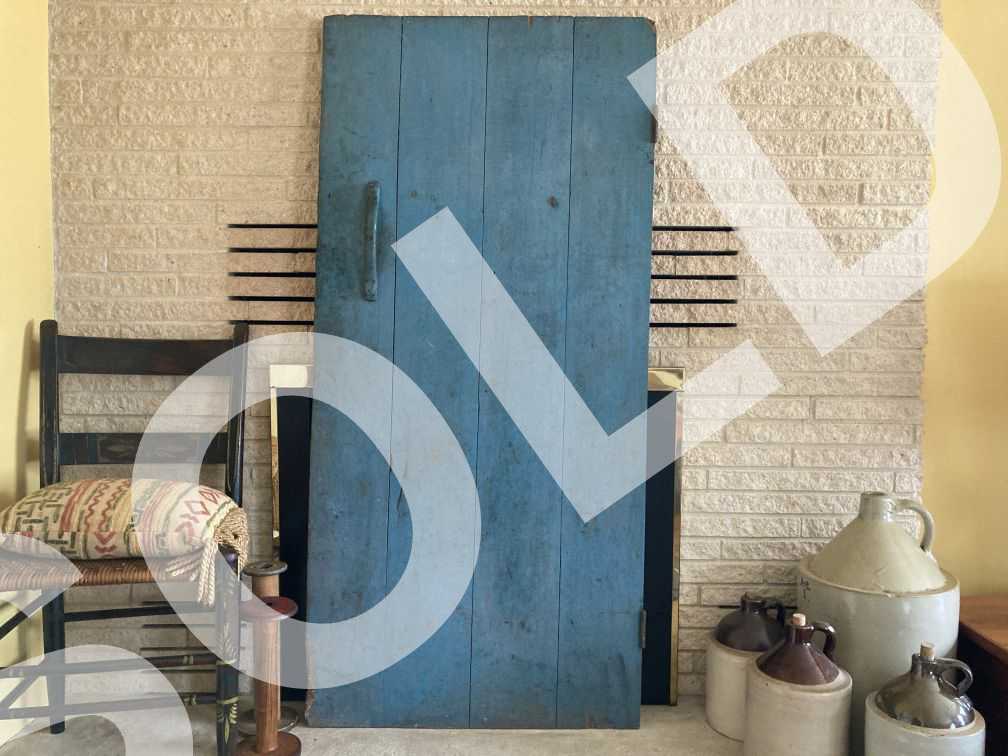 - Gorgeous salvaged antique cellar door in excellent condition with appropriate wear and tear for age, use, and abandoned status. Lovely original blue paint. Old wood losses on upper corner; newer chewed area in lower corner exposing bare, chewed wood (probably from something bigger than a mouse, like a rat or groundhog or the like). No breaks or other damage. This beautiful antique cellar door was salvaged from a magnificent abandoned farmhouse slated for demolition, along with several other interior doors and other antique and vintage items listed concurrently.