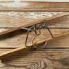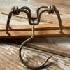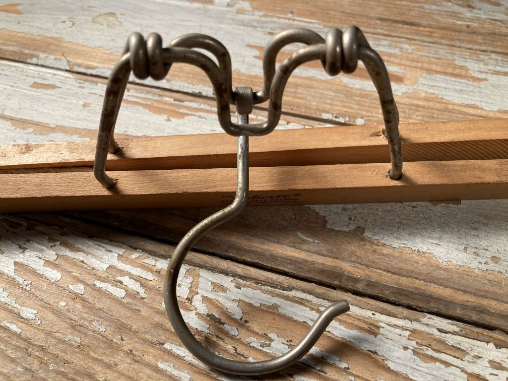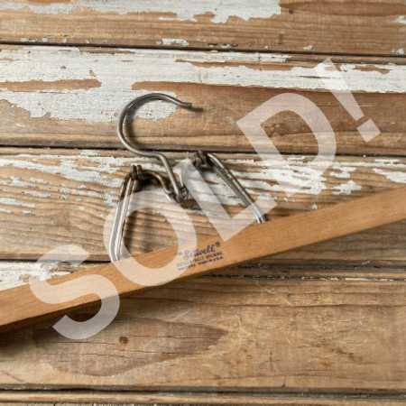 - Vintage wood and wire clamp hanger in good condition with light wear and tear. The hook lock mechanism doesn’t latch tight and hanging hook flops down, needs adjusting; light surface rust on the metal parts; only one protective pad remains on the interior. Vintage clothes hangers, used alone or in a grouping, make nice wall décor; hang a favorite piece of clothing or your unframed needlework for personal effect.