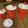 - Partial set, only 3 canisters, but 4 lids (missing one canister)