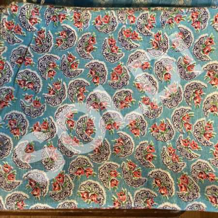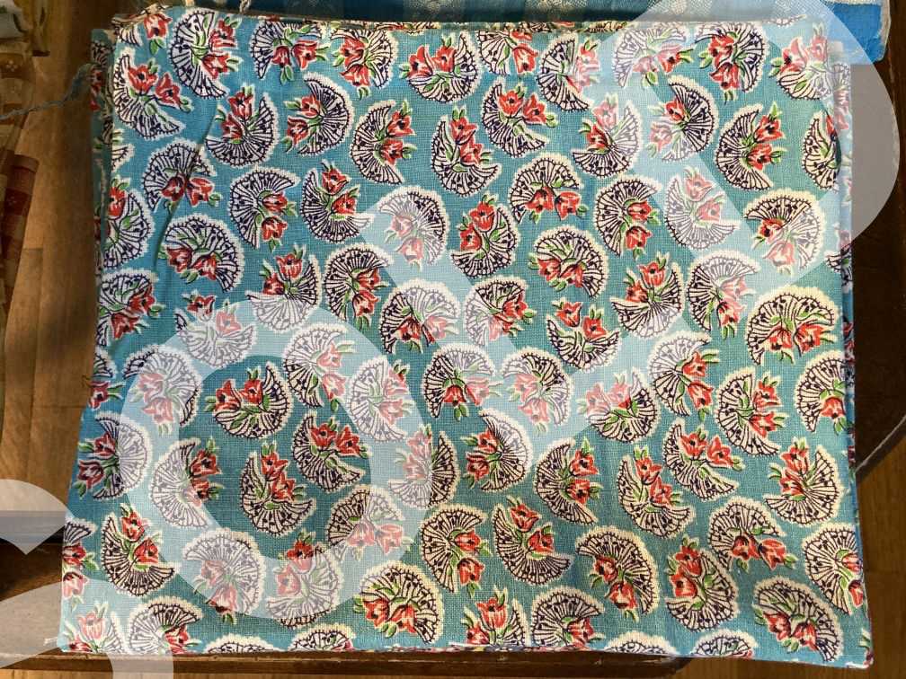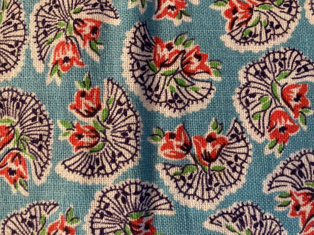 - Vintage Cotton Feedsack Fabric Red Blue Green Flowers and Fans on Aqua Whole Sack 1920s-1950s Sewing Material