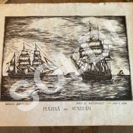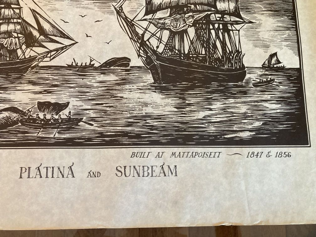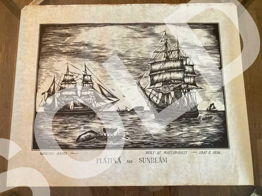 - Vintage Woodcut Print 1800s Whaling Barks Platina and Sunbeam 21Wx17H Unframed Arnold 1960s 3of4