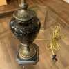 Vintage Brass Bronze Trophy Urn Table Lamp Gold Fleck Black Glass Base 1970s Hollywood Regency