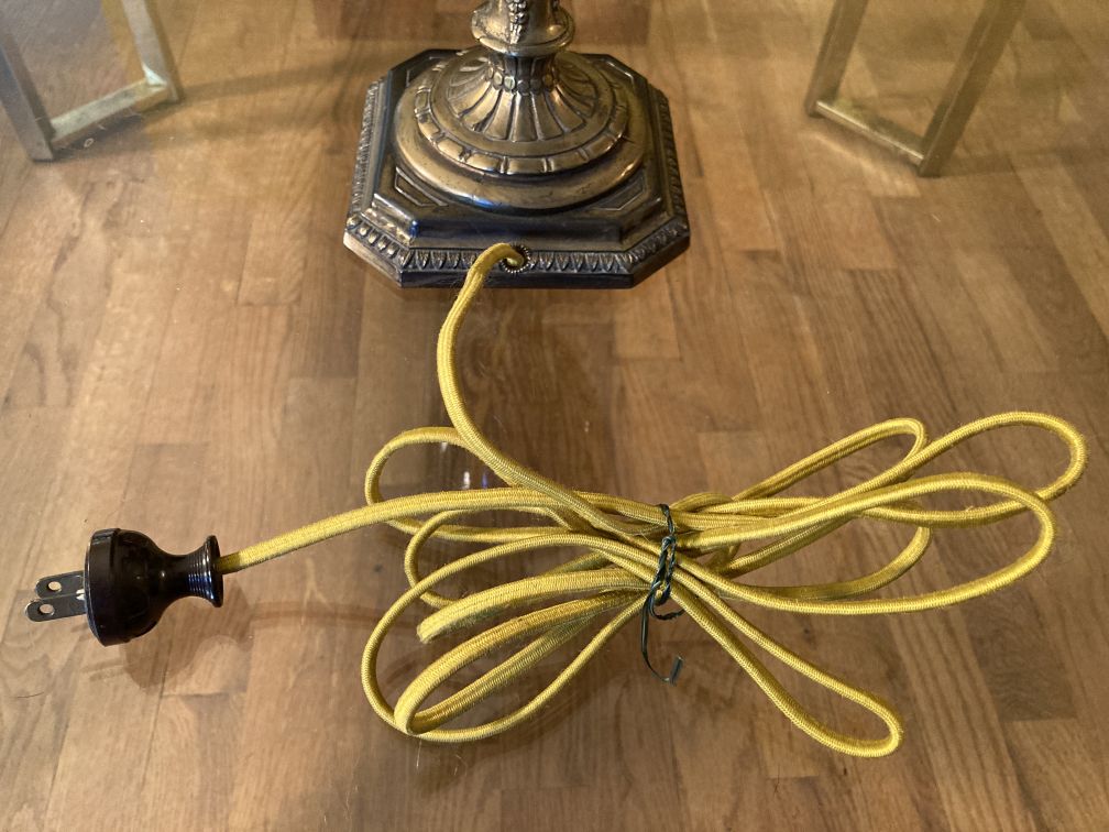 • Lamp measures 24.5” high to top of finial screw (missing finial), 17.5” high to top of socket, x approx. 4.5” at widest part of body
