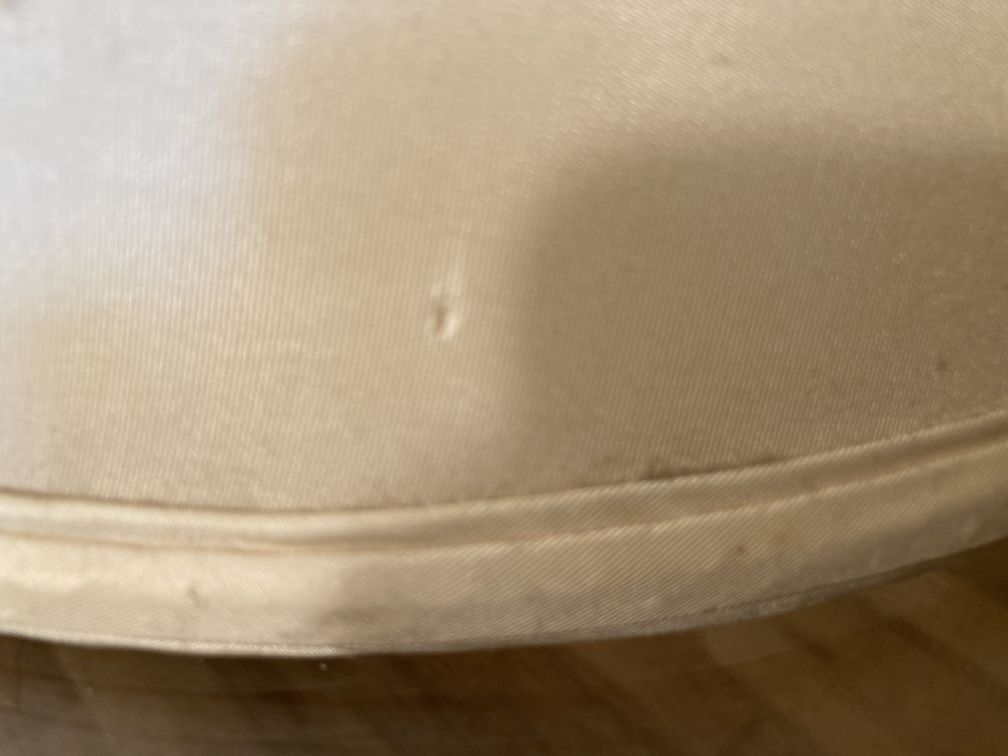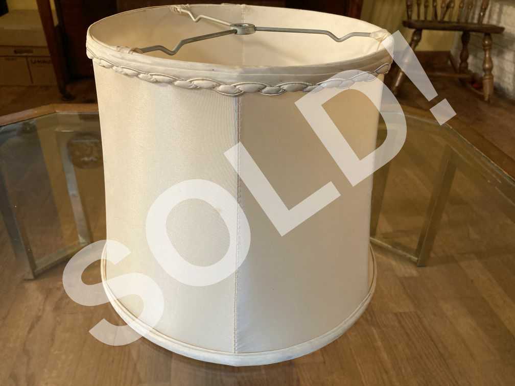 - Vintage off-white silk fabric lamp shade with top braided trim decoration
