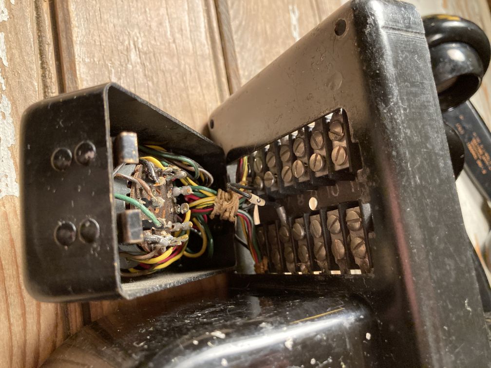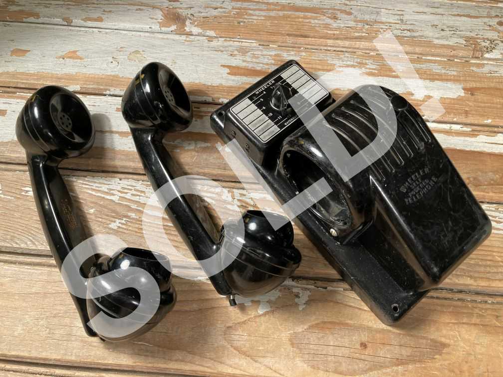 - Vintage Wheeler Self Powered Telephone unit is missing covers and possibly other loose or missing parts; UNTESTED and selling AS IS, as pictured; lot includes two separate Bakelite hand receivers. Interesting vintage Wheeler Self Powered telephone is missing covers and possible other parts, and is being sold in AS IS condition; lot includes two separate black Bakelite hand receivers with unusual mouthpieces.