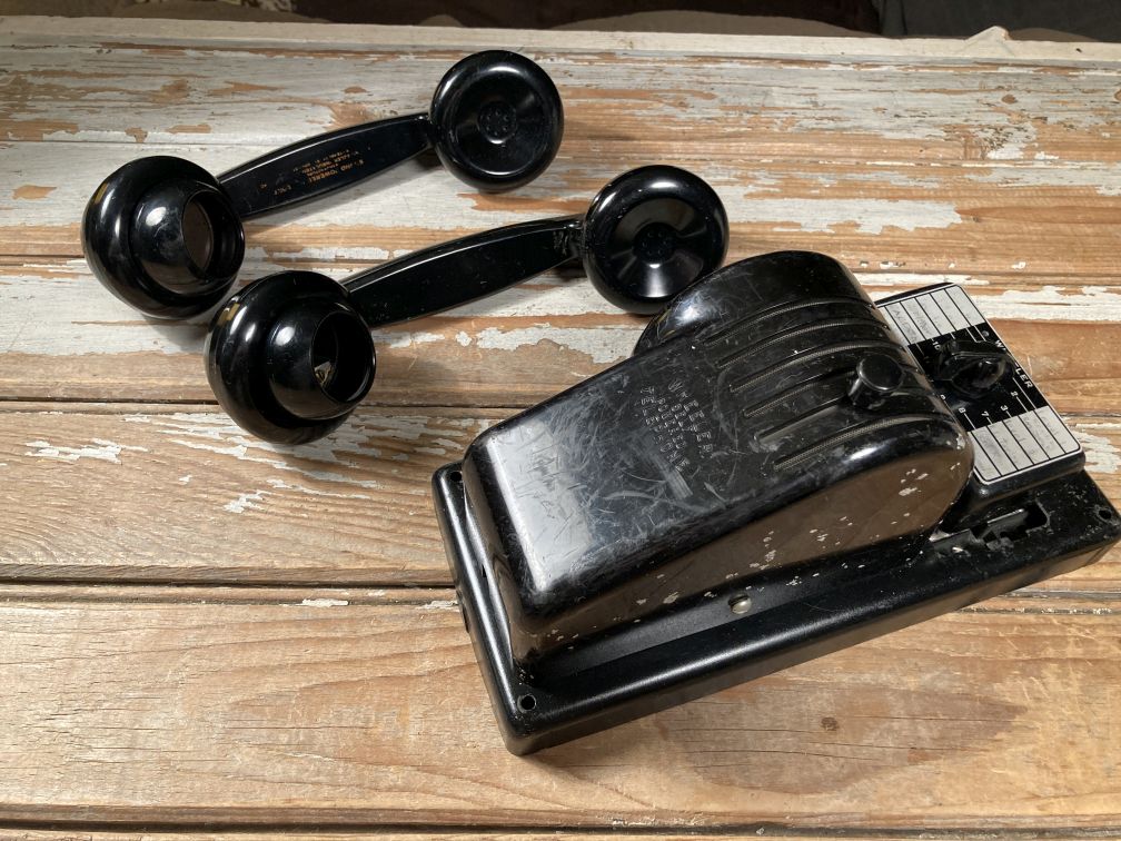- Antique Vintage Wheeler Self Powered Telephone + 2 Bakelite Receivers For Parts Or Restore