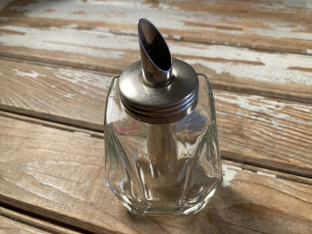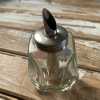 - Vintage clear glass sugar shaker pourer with stainless steel spout in excellent condition with minimal wear. No damage.