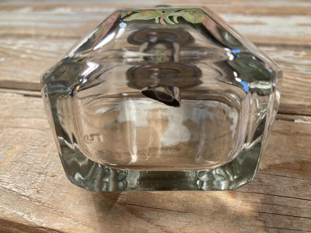 Charming vintage clear glass sugar shaker pourer features a colorful spray of flowers on the front and sturdy stainless steel cap and spout.