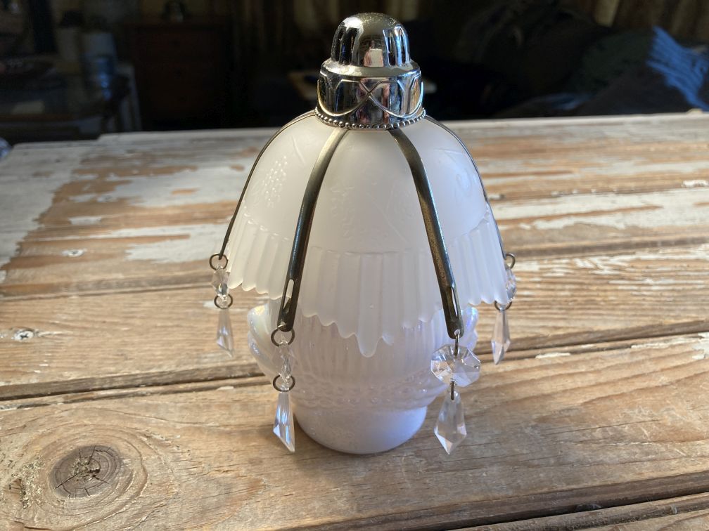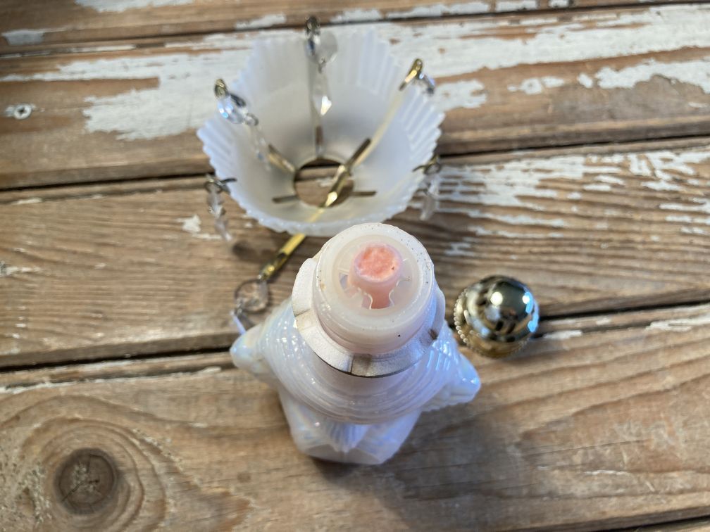 - Vintage Perfume Bottle Diffuser Opalescent Glass Angel Head Umbrella Hat Baubles