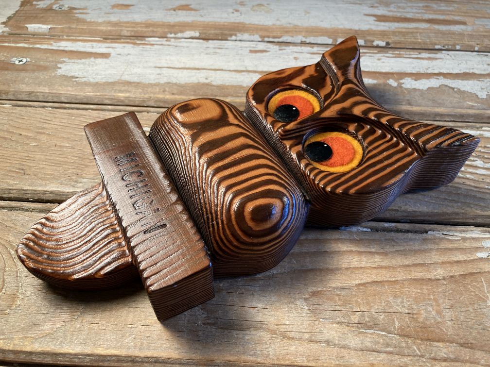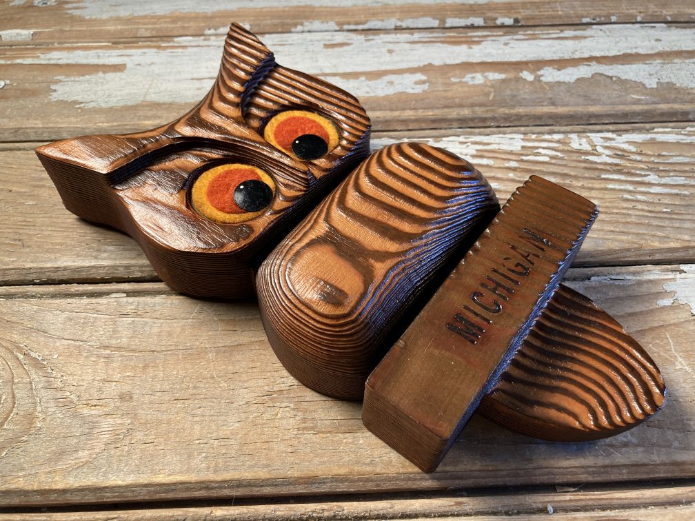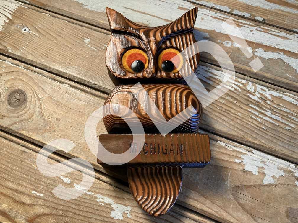 - Vintage Mid Century Wooden Owl 3D Wall Plaque Michigan Souvenir 1970s Quirky