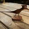 - Carved long-tail bird figurine on base, sturdy black wire legs