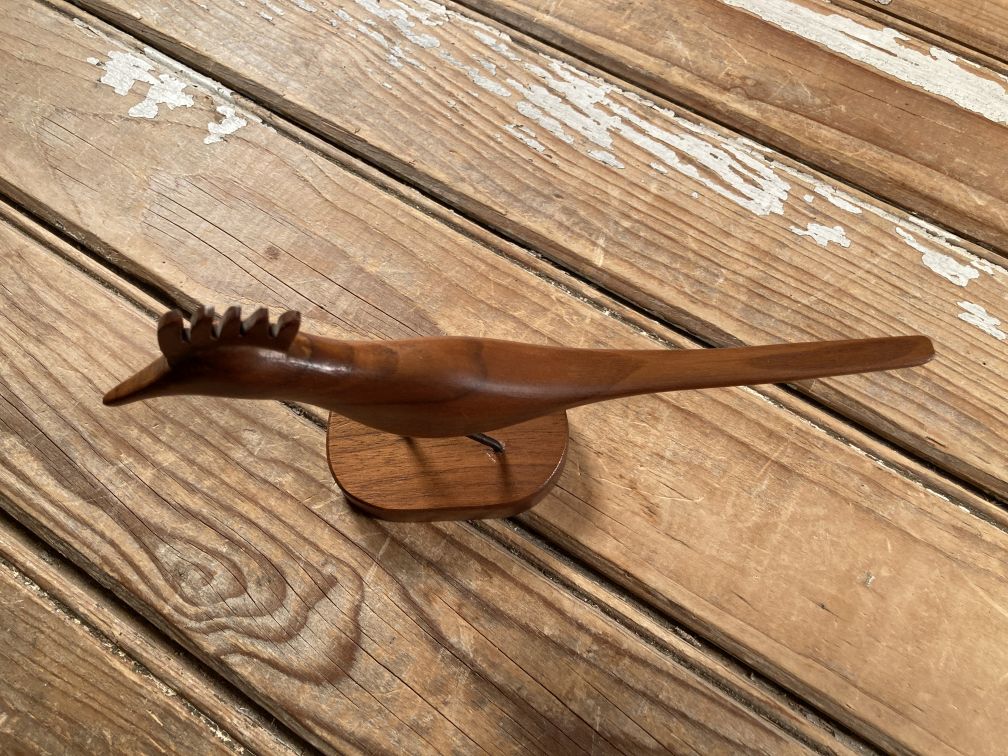 - Vintage Mid Century Modern Teak Wood Sculpture Carved Bird Wooden Figurine 1960s 1970s