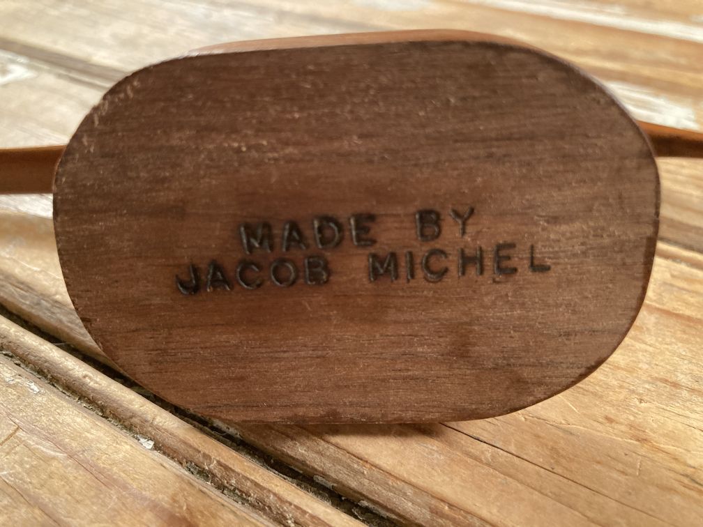 - Made by Jacob Michel, wood-burned on bottom