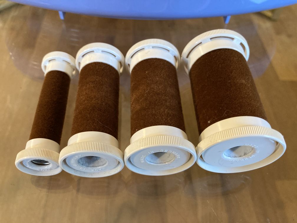 - Brown velveteen flocked rollers in varying sizes