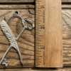 - Crossed key and quill pendant measures 1.75” wide x 2.75” high