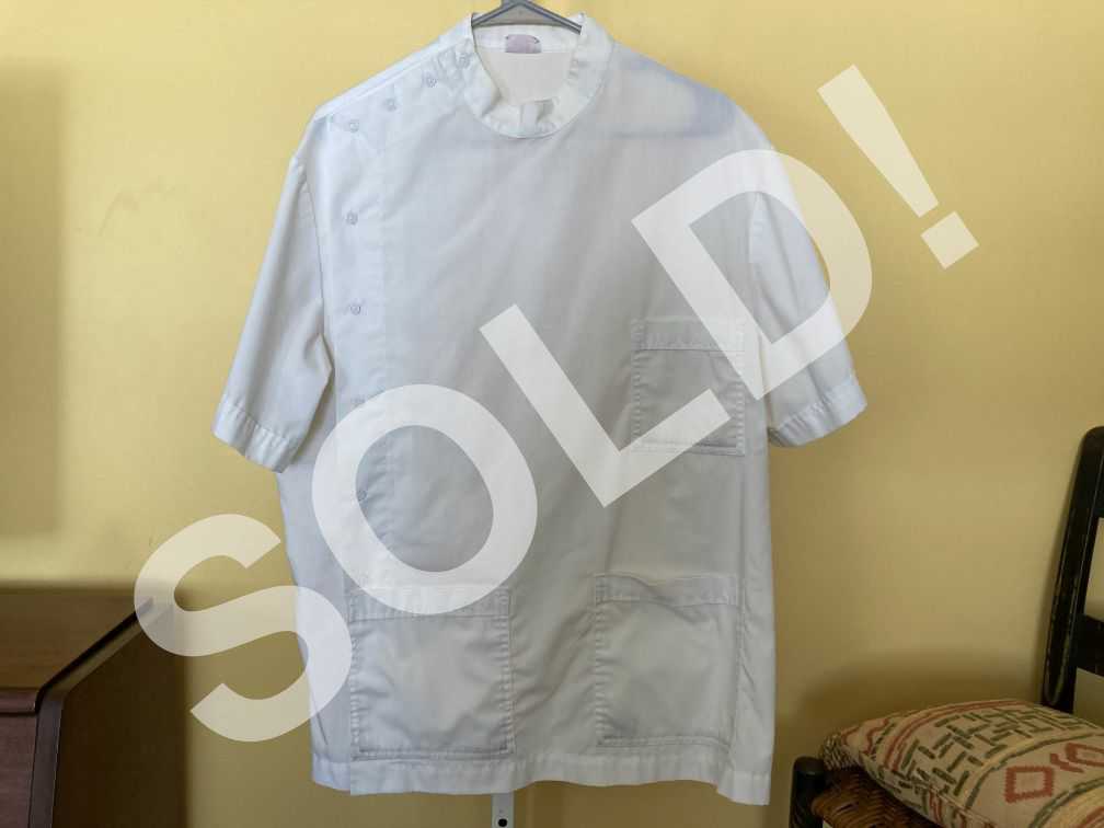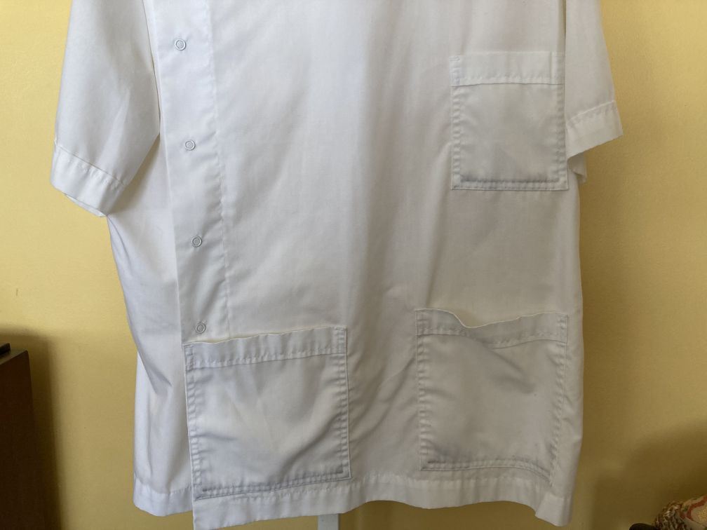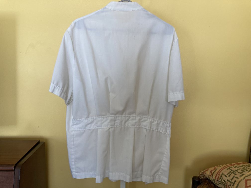 - Vintage White Men’s Lab Tech Coat Doctor Dentist Jacket Short Sleeve Snaps Pockets Meta Uniforms 1960s 1of2