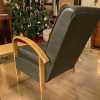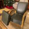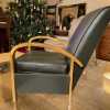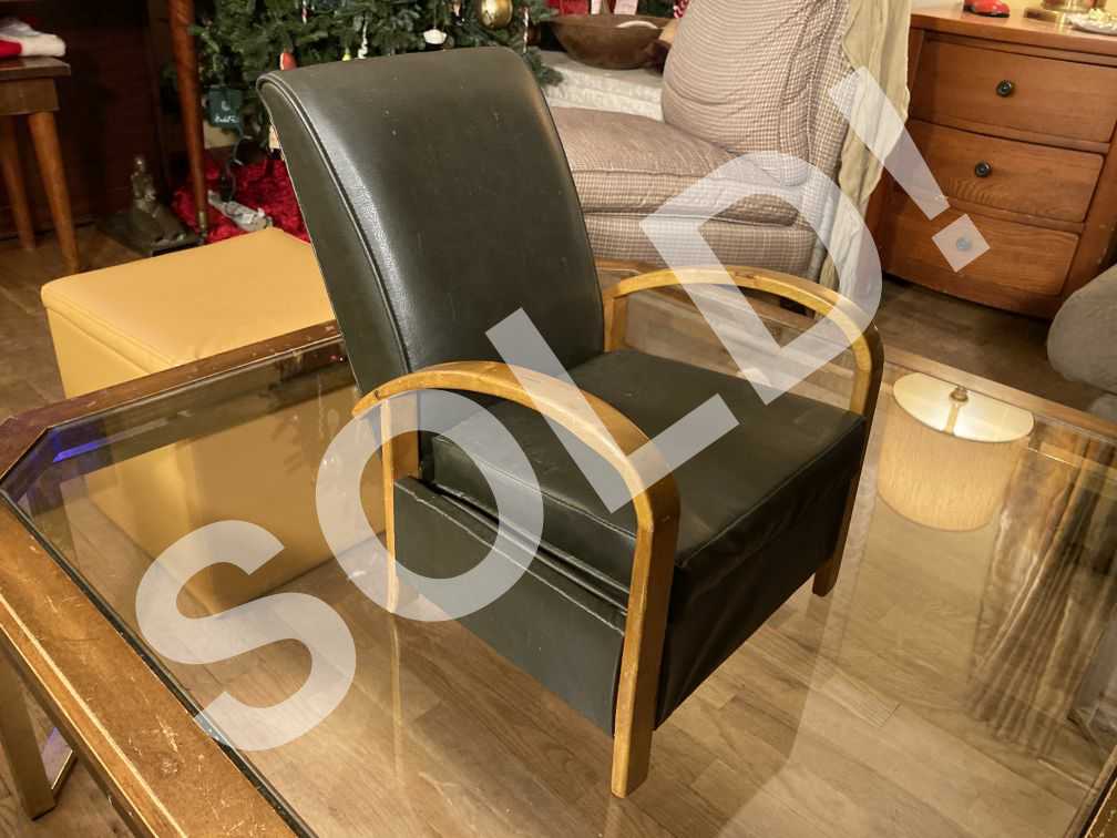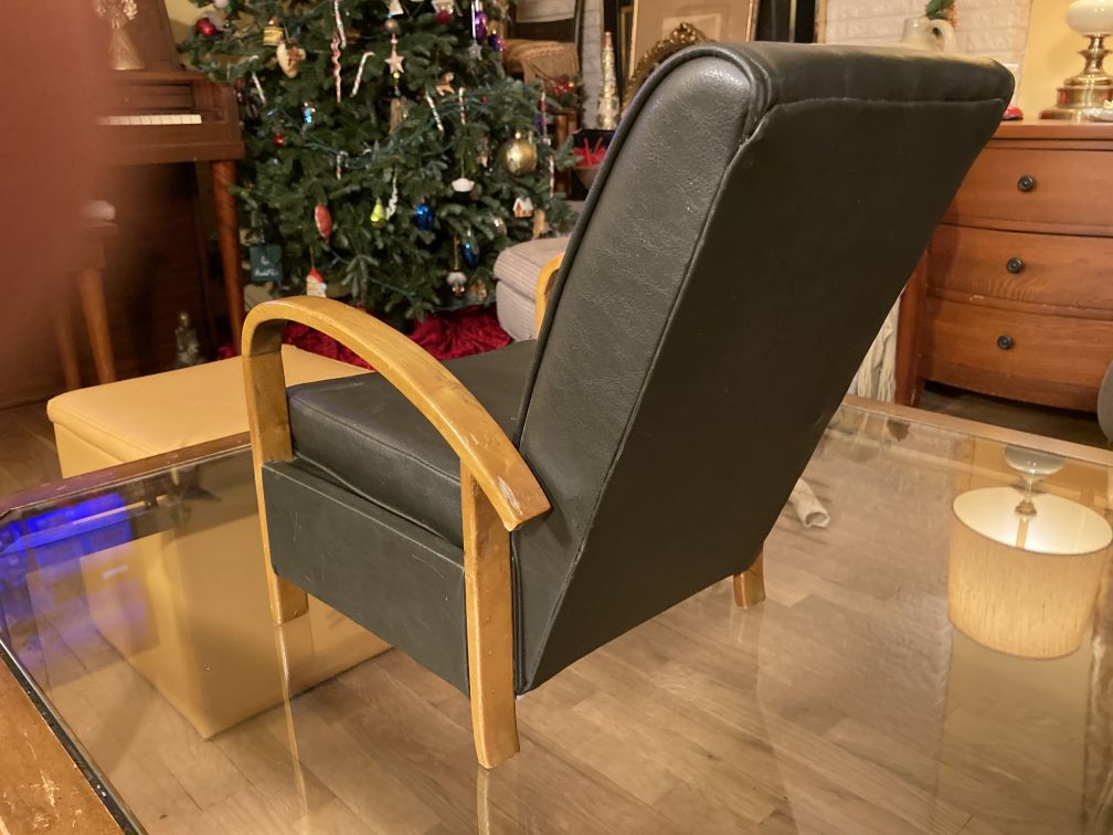 - Dark brown vinyl, fully upholstered bentwood lounge arm chair