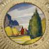 - Hand-painted farm scene with barn, silo, wagon, hay stacks, trees