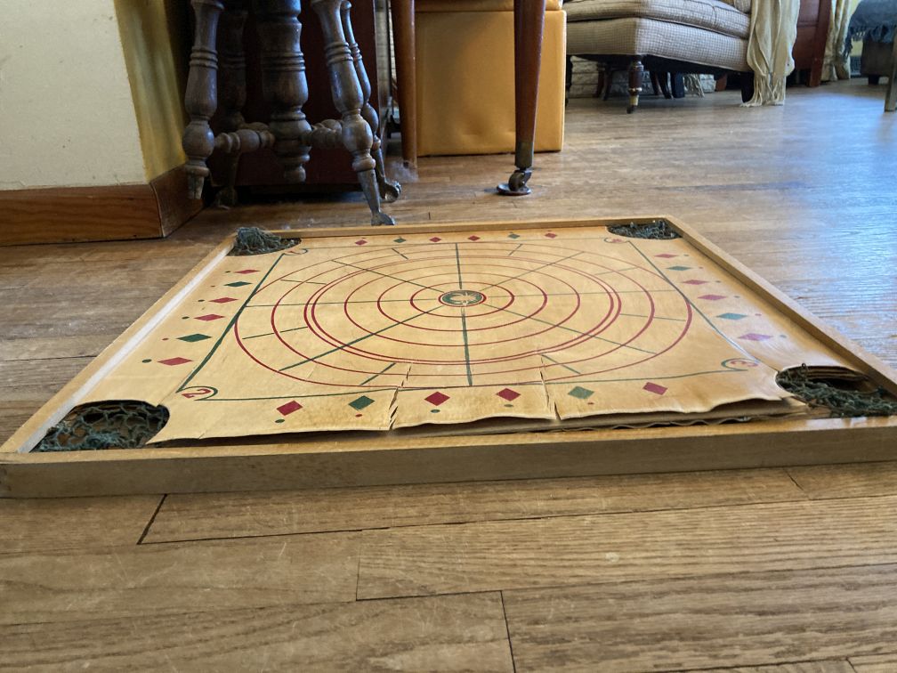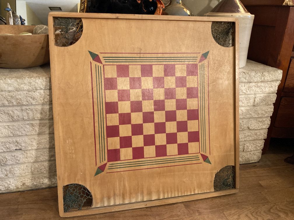 - Vintage Antique Carrom Game Board 2-Sided Checkers Crokinole AS IS Warped Splits - FOR DISPLAY ONLY