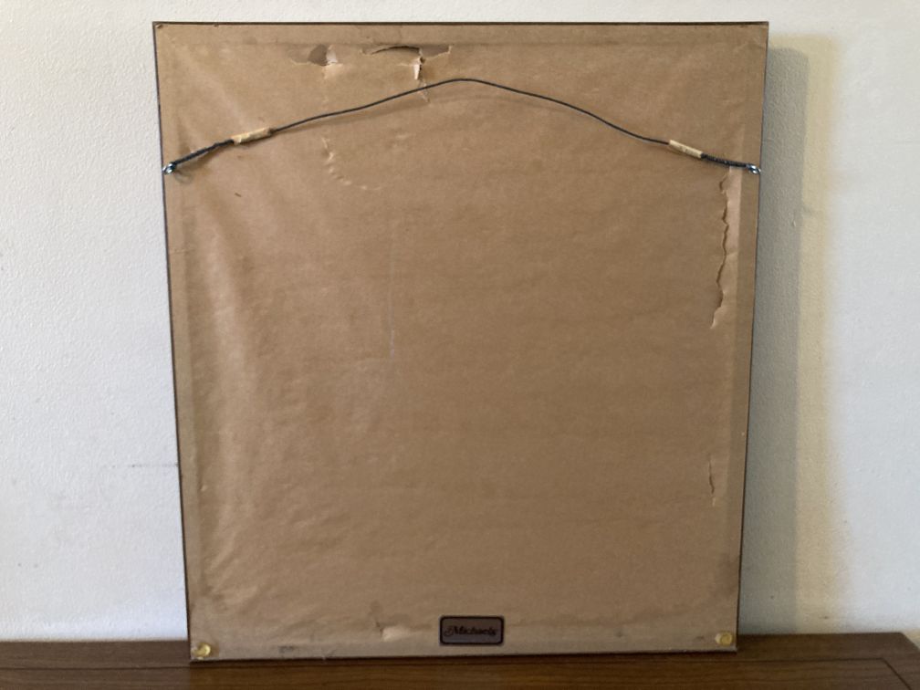 - Quality dark brown wooden frame and glass pane; paper backing with Michael's sticker on bottom back